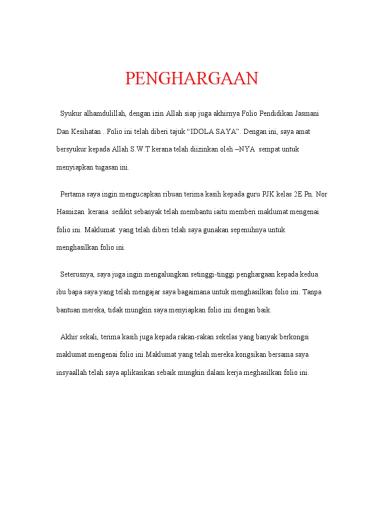 Doc Folio Pendidikan Jasmani Dan Kesihatan Tingkatan Anonymous Person Academia Edu